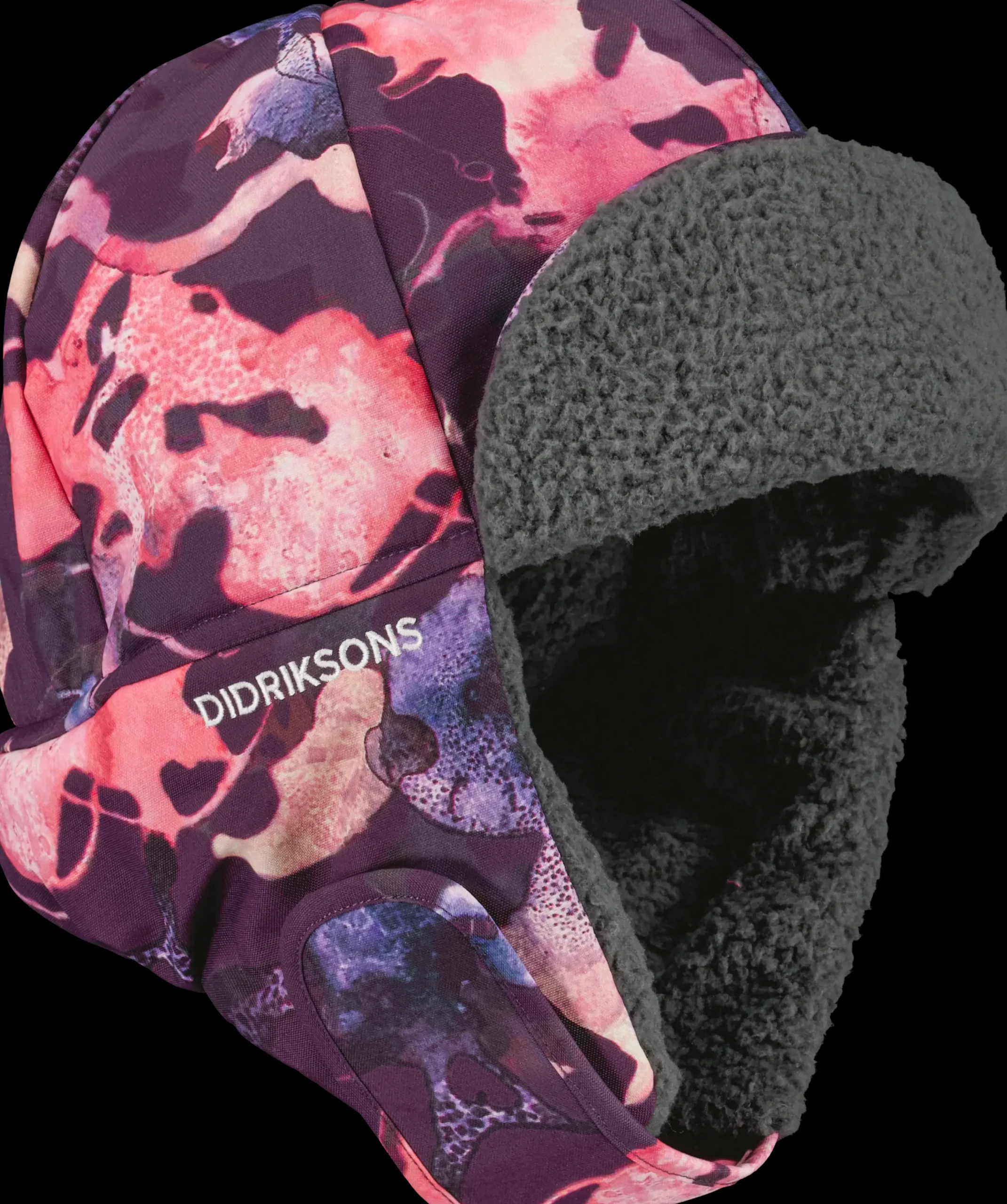 Biggles Med Trykk Er En Helt Vanntett Og Varm Lue Med Mykt, Tykt Teddyfor. Den Festes Under Haken Med Borrelas. Refleks Bak. Pfc-Fri, Vannavstotende Finish.