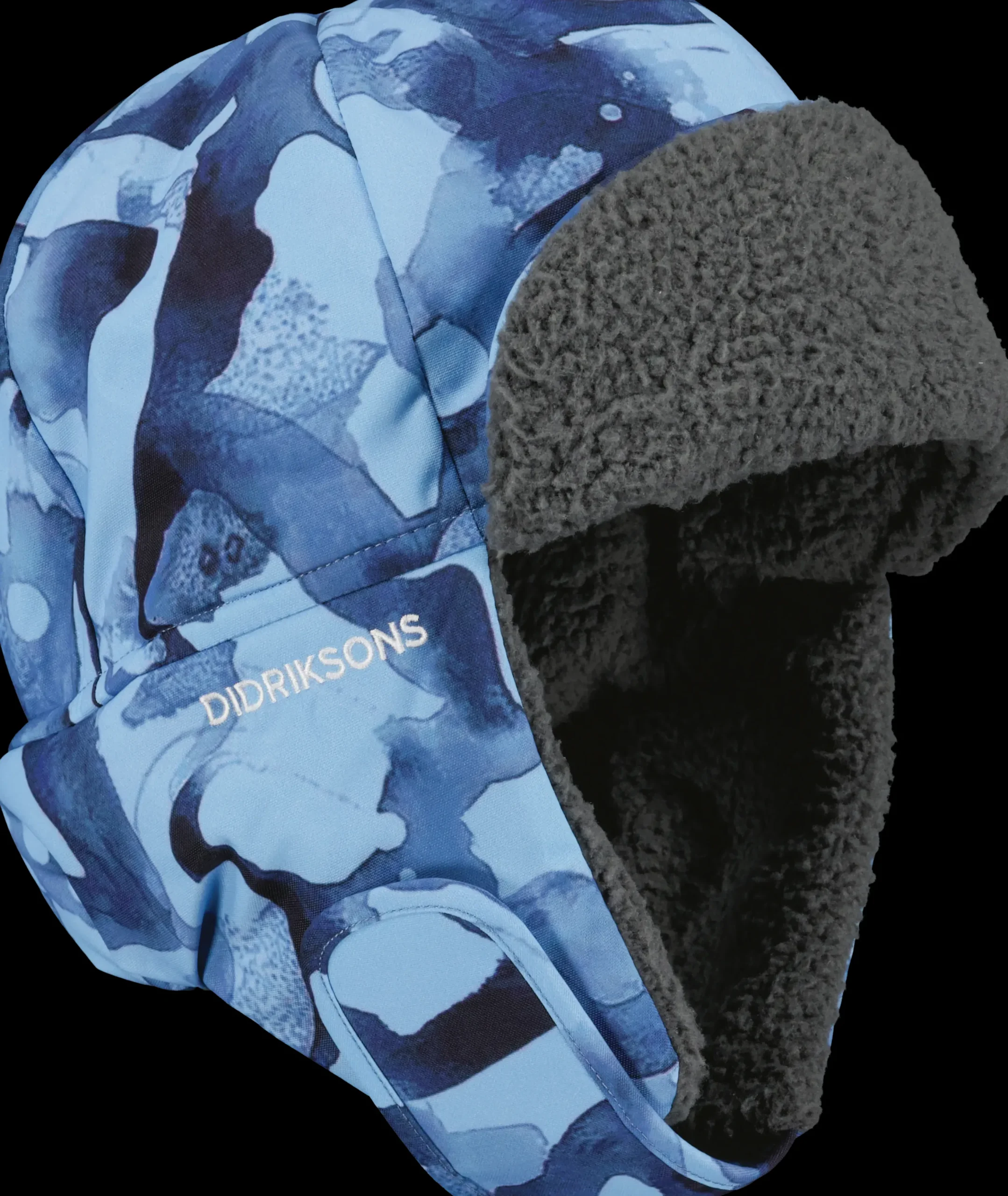 Biggles Med Trykk Er En Helt Vanntett Og Varm Lue Med Mykt, Tykt Teddyfor. Den Festes Under Haken Med Borrelas. Refleks Bak. Pfc-Fri, Vannavstotende Finish.